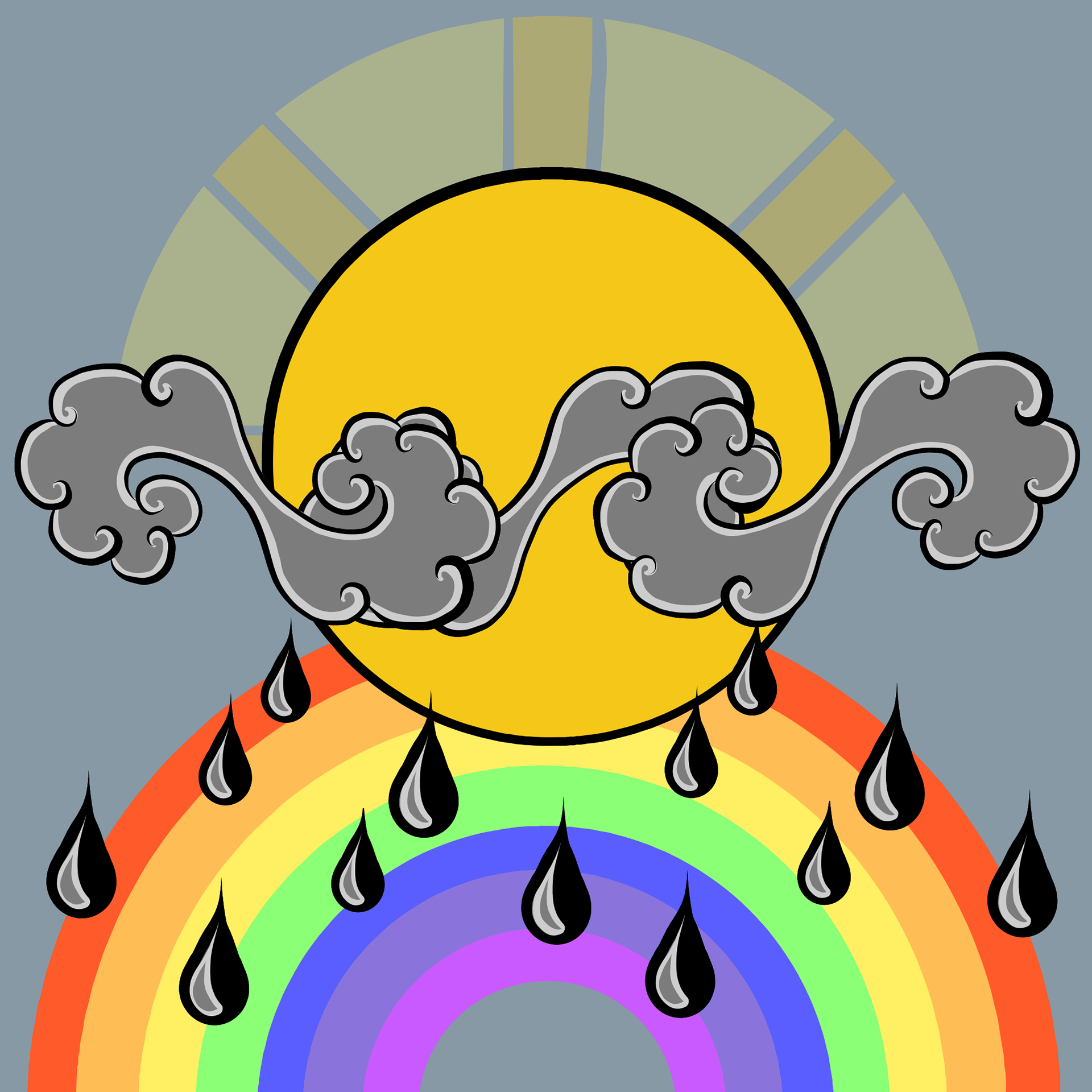 I gave myself 25 minutes for the first symbol, from start to finish. Overall I am really happy with the result! The first design was the curly cloud and a slightly simpler version of the sun. I then realized that with these and some rain drops I could create "cloudy", "sunny", "rainy" and "mixed", but not "windy", which needed it’s own concept. (My husband, ever the helpful critic, saw the wind character and asked whether I was illustrating a different kind of wind...) Originally I had intended to include a rainbow, but I prefer the simpler, less colorful version. Attempts to multiply some elements also seemed to add more distraction than value.